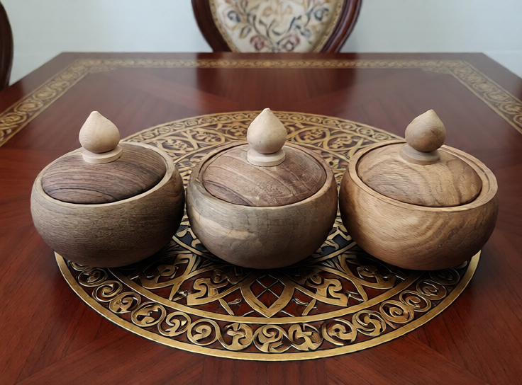 - ⏪ ساخته شده از چوب مرغوب با رگههای طبیعی و چشمنواز که هر قندان را خاص و یگانه میکند. تفاوت ظریف در رنگ و بافت هر قطعه، گواهی بر اصالت و زیبایی طبیعت است. 🪵
